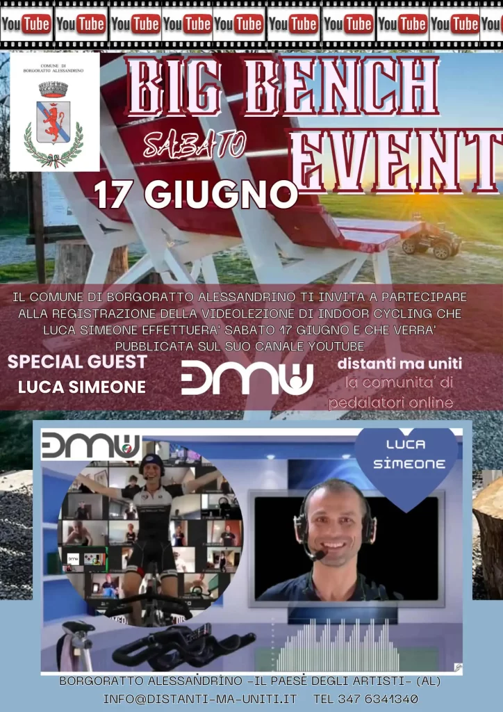 Sabato 17 Giugno: Primo pomeriggio- Registrazione ride con Luca Simeone alla “Big Bench degli Artisti” (seguirà orario più dettagliato).