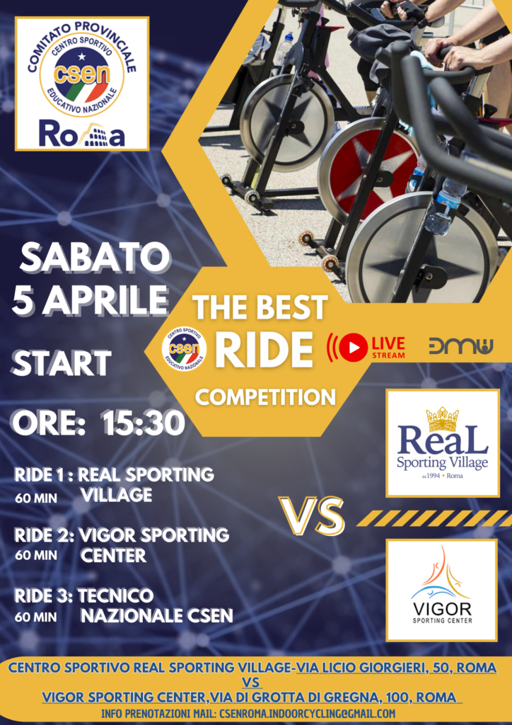 Sabato 5 aprile si svolgerà “The Best Ride!”, il primo evento competitivo di Indoor Cycling in Italia, promosso e organizzato dal Centro Sportivo Educativo Nazionale (CSEN), ente di promozione sportiva riconosciuto dal CONI.